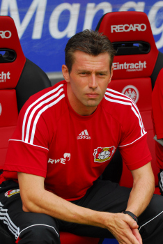 Eintracht Frankfurt vs Bayer Leverkusen. Trainer Michael Skibbe gef?llt micht was er sieht