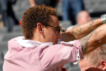 Eintracht Frankfurt vs VFL Wolfsburg, Jermaine Jones zeigt beim Autogrammschreiben seine t?towierten Arme