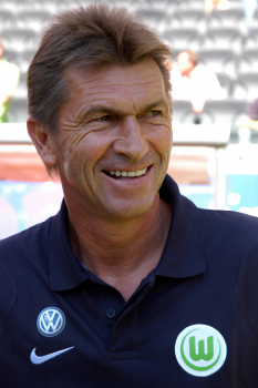 Eintracht Frankfurt vs VFL Wolfsburg,Trainer Klaus Augenthaler locker