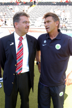 Eintracht Frankfurt vs VFL Wolfsburg Trainer Klaus Augenthaler mit Rainer Falkenhain