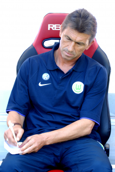 Eintracht Frankfurt vs VFL Wolfsburg,Trainer Klaus Augenthaler macht sich Notizen