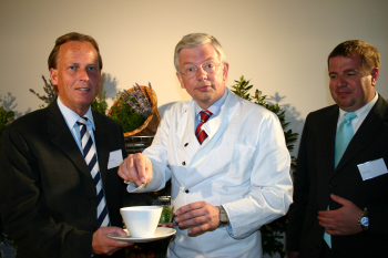 Ministerpr?sident Roland Koch hier mit FSV-Pr?sident Michael G?rner und Manager Reisig