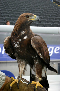 Der Eintrachtadler Attila ist bei jedem Heimspiel im Stadion.
