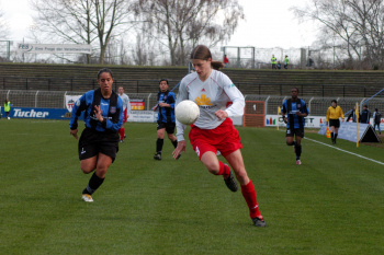 Steffi Jones, FFC Frankfurt gegen Mirja Kothe, Essen-Sch?nebeck