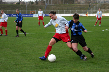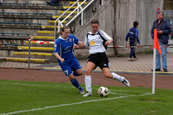 FSV Frankfurt gegen FFC Frankfurt Birgit Prinz ?berl?uft Vrena Volz und macht ein Tor