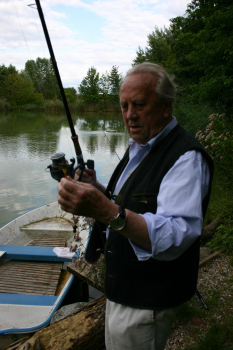 Waldemar Klein Ehrenpr?sident der Offenbacher Kickers erholt sich am liebsten beim Angeln an seinem See