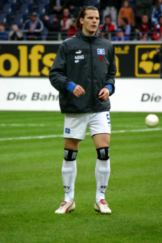 Daniel van Buyten , HSV, w?rmt sich vor dem Spiel au
