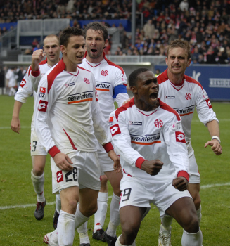 Grosser Jubel bei den Mainzern und dem Torsch?tzen Felix Borja