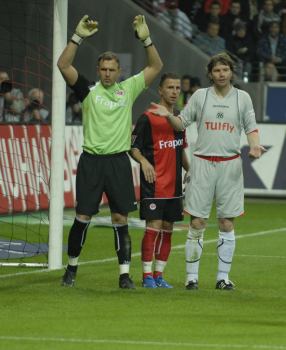 Eintracht Frankfurt vs Hannover 96, Torwart Markus Pr?ll, Benjamin K?hler, Michael Tarnat