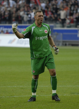 Eintracht Frankfurt vs Bayer 04 Leverkusen,Torwart Markus Pr?ll in Siegerpose
