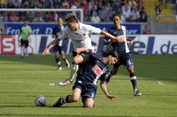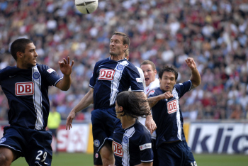 Eintracht Frankfurt vs Hertha BSC, Albert Streit vs Marko Pantelic, rechts Lucio Cajueiro Souza