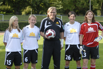1. FFC Frankfurt Saison 2007/2008 - Svenja Huth, Conny Pohlers, Dr. Hans-J?rgen Tritschoks, Anne Engel, Stephanie Ullrich
