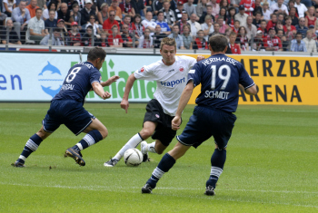 Saison 2007/08 Eintracht Frankfurt vs Hertha BSC, Alexander Meier zwischen Pal Dardai und Andreas Schmidt