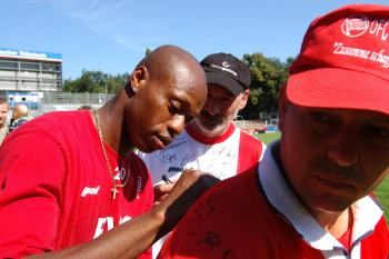 5.8.2007 - OFC Fantag am Bieberer Berg, Adebowale Ogungbure schreibt fleipig Autogramme
