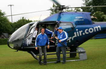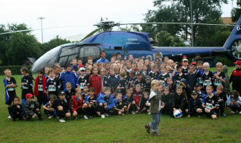 9.8.2007 FSV Frankfurt, FFH Fussballschule, Aufstellung zum Gruppenbild mit Fredi Bobic vor dem Heli