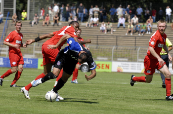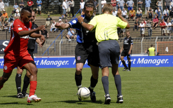 4.8.2007 FSV Frankfurt vs Sportfreunde Siegen Regionalliga S?d, Matthias Hagner vs Peter Nemeth und Geritt M?ller
