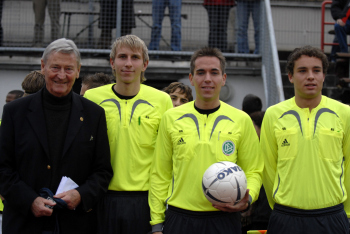 Schiedsrichterbetreuer Kurt E. Schmidt mit dem Schiedsrichterteam