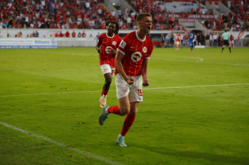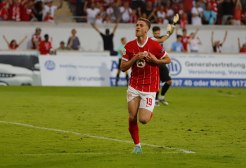 08.08..2025 xhpx Offenbach am Main, Sparda-Bank-Hessen Stadion - Stadion Bieberer Berg Kickers Offenbach (OFC) - FC Bayern Alzenau Jubel Jelle Goselink (19, OFC) ********* Foto: A2Bildagentur Peter Hartenfelser