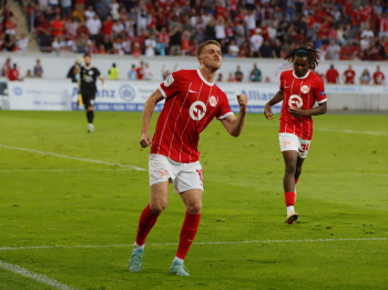 08.08..2025 xhpx Offenbach am Main, Sparda-Bank-Hessen Stadion - Stadion Bieberer Berg Kickers Offenbach (OFC) - FC Bayern Alzenau tor zu, 1:0 durch Kristjan Ara Cesen (14, OFC) ********* Foto: A2Bildagentur Peter Hartenfelser