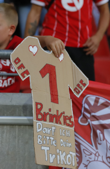 08.08..2025 xhpx Offenbach am Main, Sparda-Bank-Hessen Stadion - Stadion Bieberer Berg Kickers Offenbach (OFC) - FC Bayern Alzenau Trikotwunsch nach dem Trikot von Torwart Johannes Brinkies (1, OFC) ********* Foto: A2Bildagentur Peter Hartenfelser