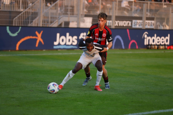 Roppelt, Bastian (13, Frankfurt Galaxy) mit dem Ball und Kariem Al Soufi ( 79, Frankfurt Galaxy)