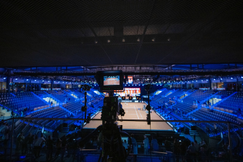 Feature, Symbolbild, Blick durch den Monitor der Fernsehkamera auf den Center Court.