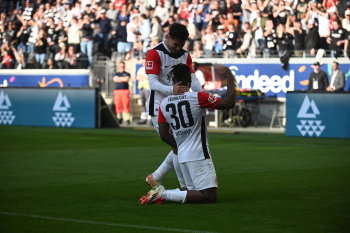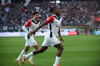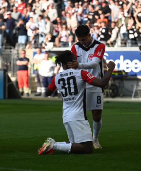 beim warmlaufen Niels NKOUNKOU (29, Eintracht Frankfurt) und Elye Wahi (17, Eintracht Frankfurt)