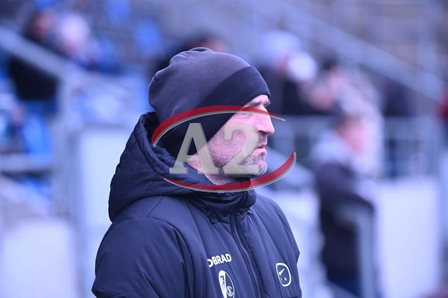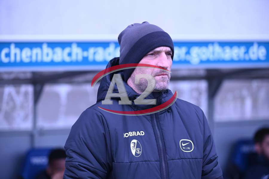 Karl Steinman (FreiburgII ) gegen Lucas Hermes (27, FSV Frankfurt) und CaS Peters (10, FSV Frankfurt)