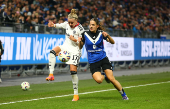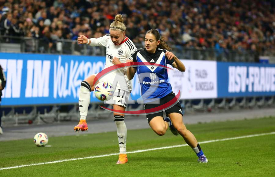 02.11.2025, xcex, GER, Hamburg, Volksparkstadion, Frauenfussball, 1. Bundesliga, DIE LIGA, Google Pixel Frauen-Bundesliga, Saison 2025/2026, Spieltag 8, SGE, HSV, Hamburger SV - Eintracht Frankfurt Frauen,  Pia-Sophie Wolter (SGE) gegen Almudena Sierra (HSV)