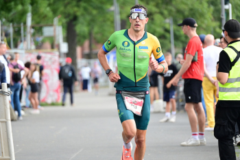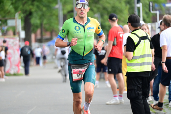 18.08.2024 xkhx Frankfurt am Main IRONMAN European Championship Frankfurt 2024 Ziel Bester Deutscher Platz 6 für Hoffmann Jonas DEU (Germany) ***** Foto: A2Bildagentur Hartenfelser Peter Hartenfeser