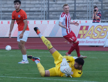 Schiedsrichter Jannick Ziemer, Kaan Inanoglu (11, Eintracht Frankfurt II), Sercan Sararer (10, Hessen Kassel),Torwart Franz Langhoff (39, Hessen Kassel)