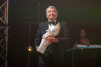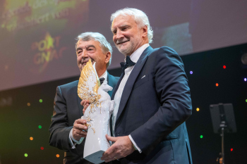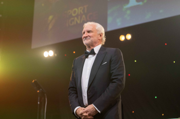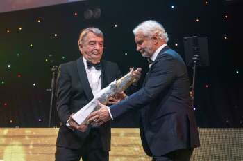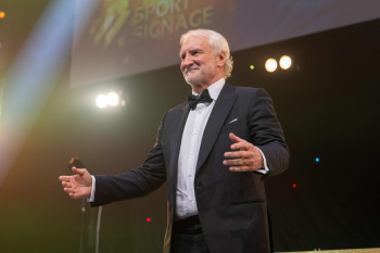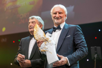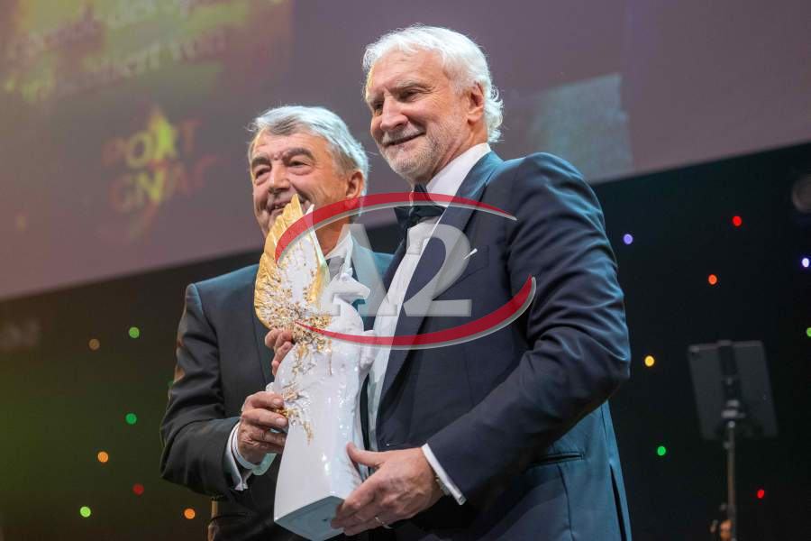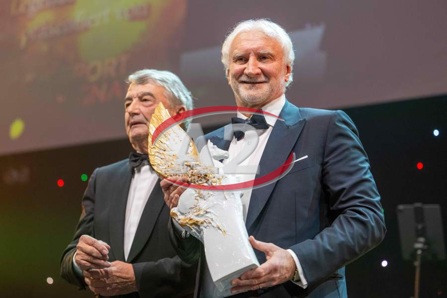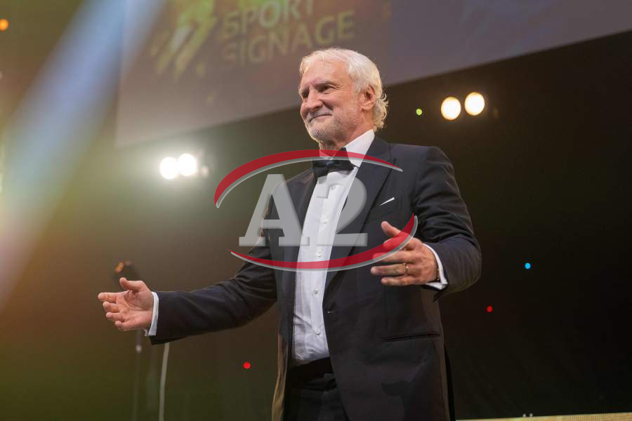 Wolfgang Niersbach, ehemaliger DFB-Präsident überreicht den Pegasus-Preis Legende des Sports.
