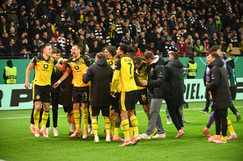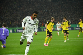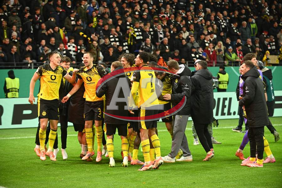 Torjubel nach dem Tor zum 1:0 durch Ansgar Knauff (7, Eintracht Frankfurt) hier mit Mario Götze (27, Eintracht Frankfurt)