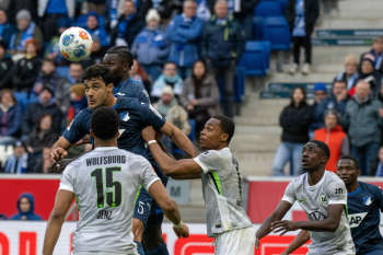 Bazoumana Toure (TSG 1899 Hoffenheim), Sael Kumbedi (VfL Wolfsburg), Wouter Burger (TSG 1899 Hoffenheim) und Jeanuel Belocian (VfL Wolfsburg).