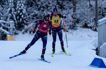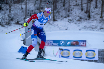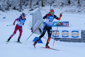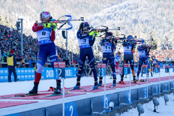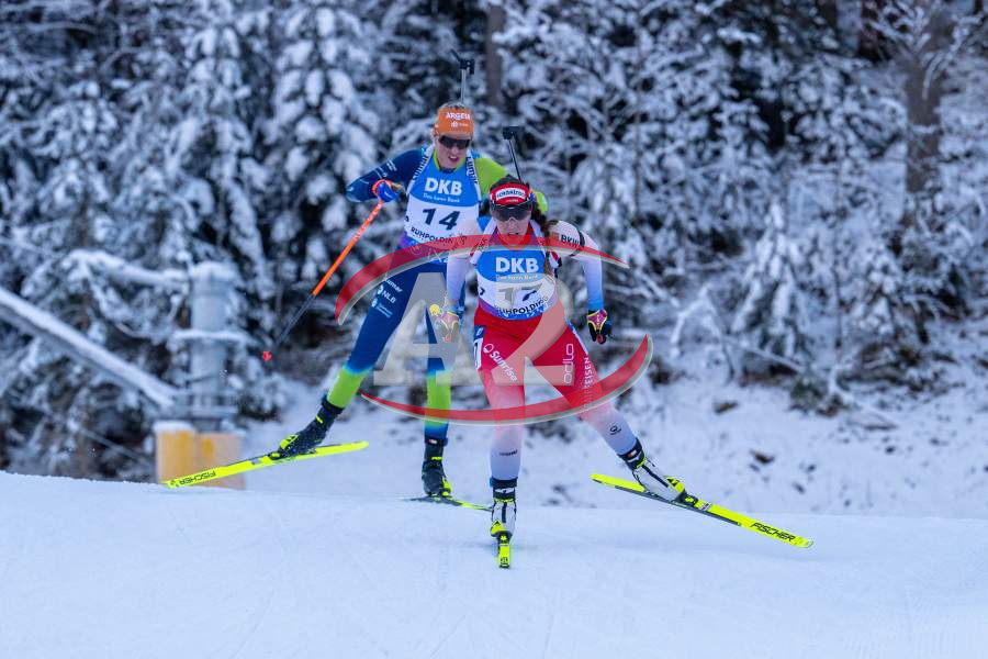 Lucie Charvatova (CZE), Lisa Vittozzi (ITA), Juni Arnekleiv (NOR), Franziska Preuss (GER) und Lou Jeanmonnot (FRA).