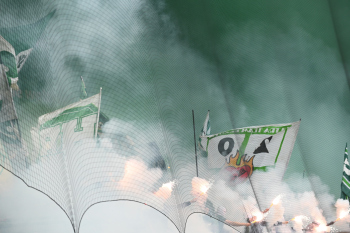 In der Nordwestkurfe zeigen die Ultras / Fans Wieder Flagge, Schals und Banner